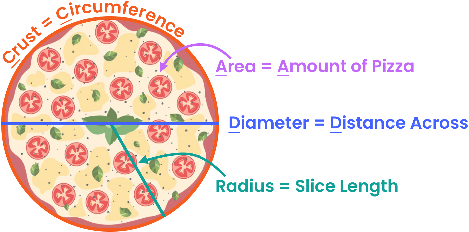 Remembering all the different parts of a circle and what they represent can sometimes feel a little out of reach. That’s why we like to think about them in terms of our favorite type of circle...pizza!